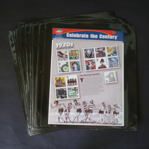 The Supersafe Mint Sheet pages house panes of 50 standard US commemorative stamps, panes of 100 standard US definitive stamps, souvenir sheets and the current small panes of US stamps. These mint sheets are sold in packs of 12 pages. Blue, gray, red or black mint sheet binders also are available and sold separately through our store.